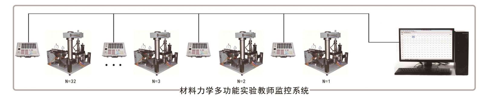 2、特點(diǎn)  實(shí)驗(yàn)臺(tái)采用蝸桿機(jī)構(gòu)以螺旋千斤進(jìn)行加載,經(jīng)傳感器由數(shù)字測(cè)力儀測(cè)出力的讀數(shù);各試件受力變形,通過應(yīng)變片由電阻應(yīng)變儀顯示。整機(jī)結(jié)構(gòu)緊湊、外型美觀、加載穩(wěn)定、操作省力,實(shí)驗(yàn)效果好,易于學(xué)生自己動(dòng)手,有利于提高教學(xué)質(zhì)量。本儀器的潛力較大,還可根據(jù)需要,增設(shè)其它實(shí)驗(yàn),實(shí)驗(yàn)數(shù)據(jù)也可由計(jì)算機(jī)處理。